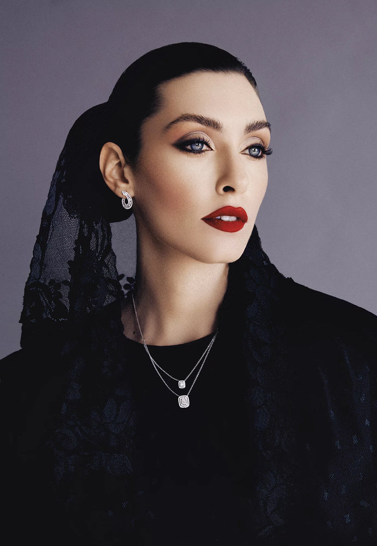 Una scelta di design di grande raffinatezza valorizza l’originale combinazione di diamanti taglio baguette e brillante per i pendenti in oro bianco.