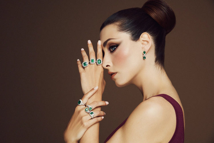 Il taglio particolare degli smeraldi e i diamanti incantevoli danno vita ad autentici capolavori di gioielleria. Anelli e orecchini in oro bianco, con smeraldi taglio ovale, rettangolare e goccia contornati da brillanti.