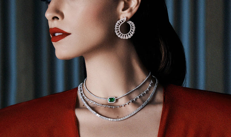 Una combinazione di lusso e raffinatezza per gli esclusivi gioielli in oro bianco e pietre preziose, dall’allure regale.